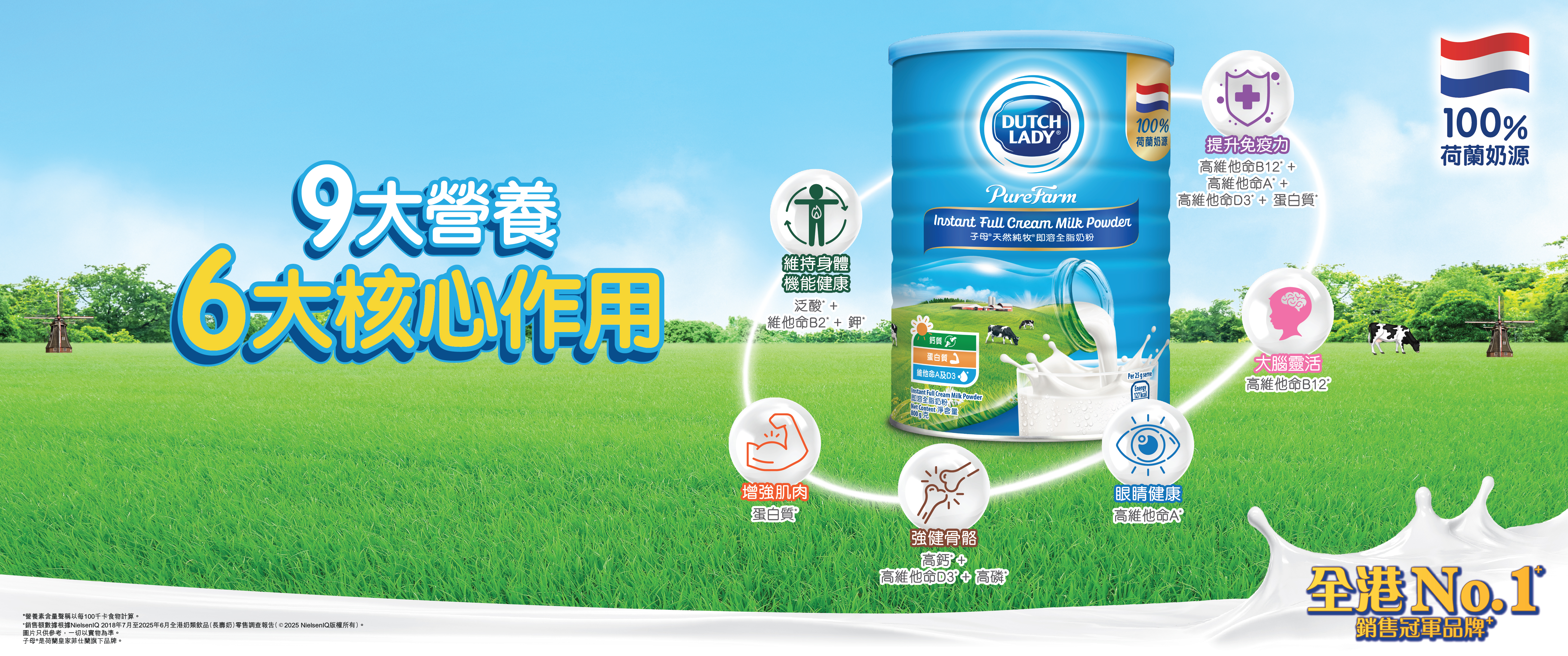 100%新鮮放牧牛奶^,源自荷蘭名種乳牛,獲得荷蘭乳牛牧業信心保證+。 高鈣*及含優質乳蛋白*♦︎,適合大人及小朋友!
